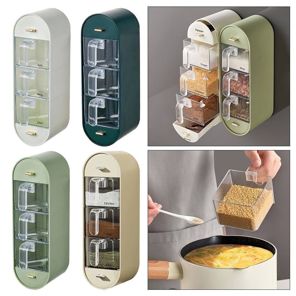 Cet ensemble complet comprend plusieurs compartiments pour stocker divers ingrédients, tels que le sel, le poivre et d'autres assaisonnements essentiels à votre cuisine. Chaque compartiment est équipé d'une poignée intégrée pour une manipulation aisée.